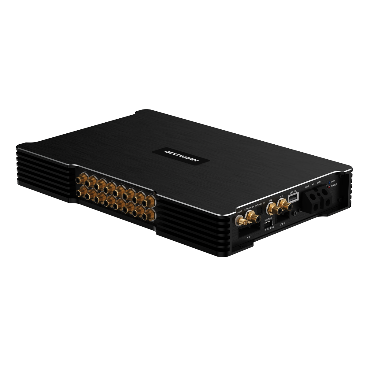 GOLDHORN AB 218 v1.3 - 20-канальный усилитель D-класса со встроенным 28-канальным процессором и цифровой шиной A²B. (16 x 50 / 80 Вт + 4 x 100 / 150 RMS / Max).