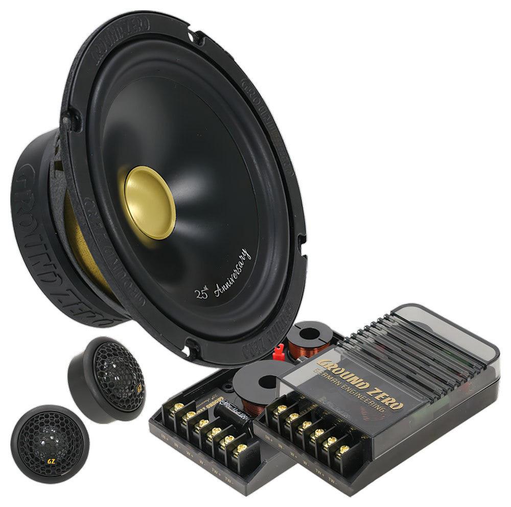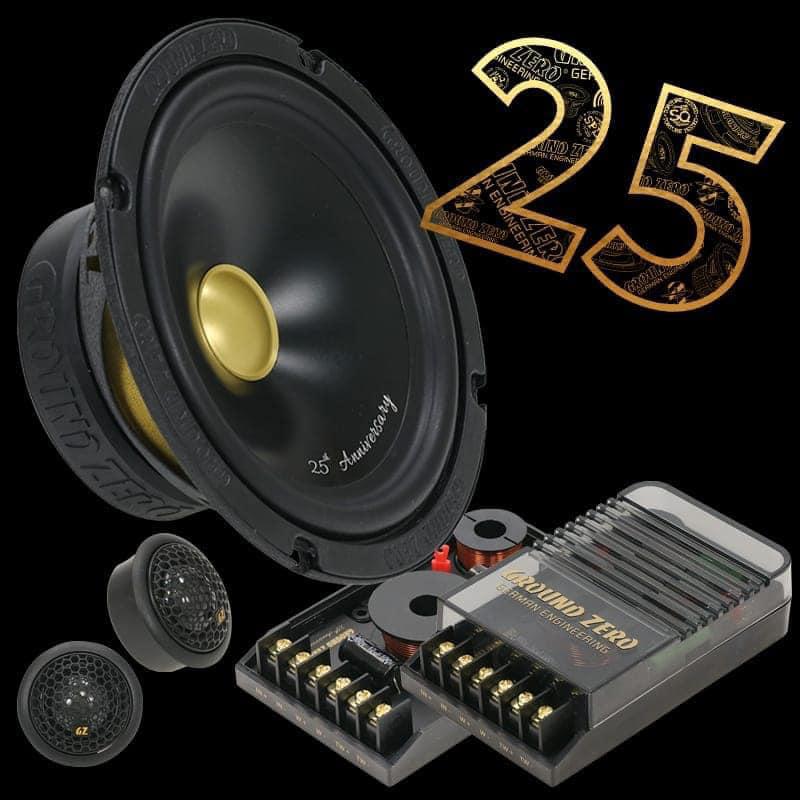 К четвертьвековому юбилею компании GROUND ZERO выпущена лимитированная серия двухполосной компонентной акустики GZRC 165 ANNIVERSARY-25. Это юбилейная версия модели GZRC 165.2SQ из серии Radioactive, популярной у поклонников качественного звука. Отличается она от базовой «золотым» дизайном компонентов, 28-мм твитером (у базовой версии 25 мм), кроссоверами на заказных конденсаторах Mundorf.