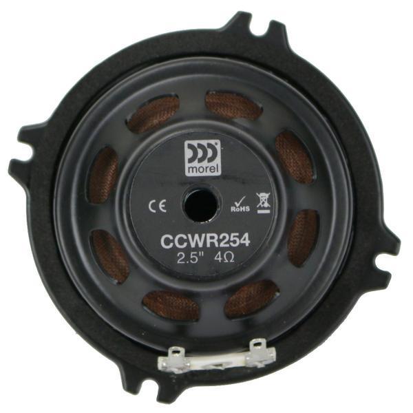 Автомобильная акустика Morel CCWR 254 - широкополосные динамики, 2,5", охватывающие как среднечастотный, так и высокочастотный диапазон. Воспроизводят музыку с детализированными высокими частотами и сочными средними частотами, 80 Вт (макс)/40 Вт (ном), чувствительность 84,5 дБ. Могут использоваться как с твитерами, так и без. Поставляется без грилей. Производитель MOREL.